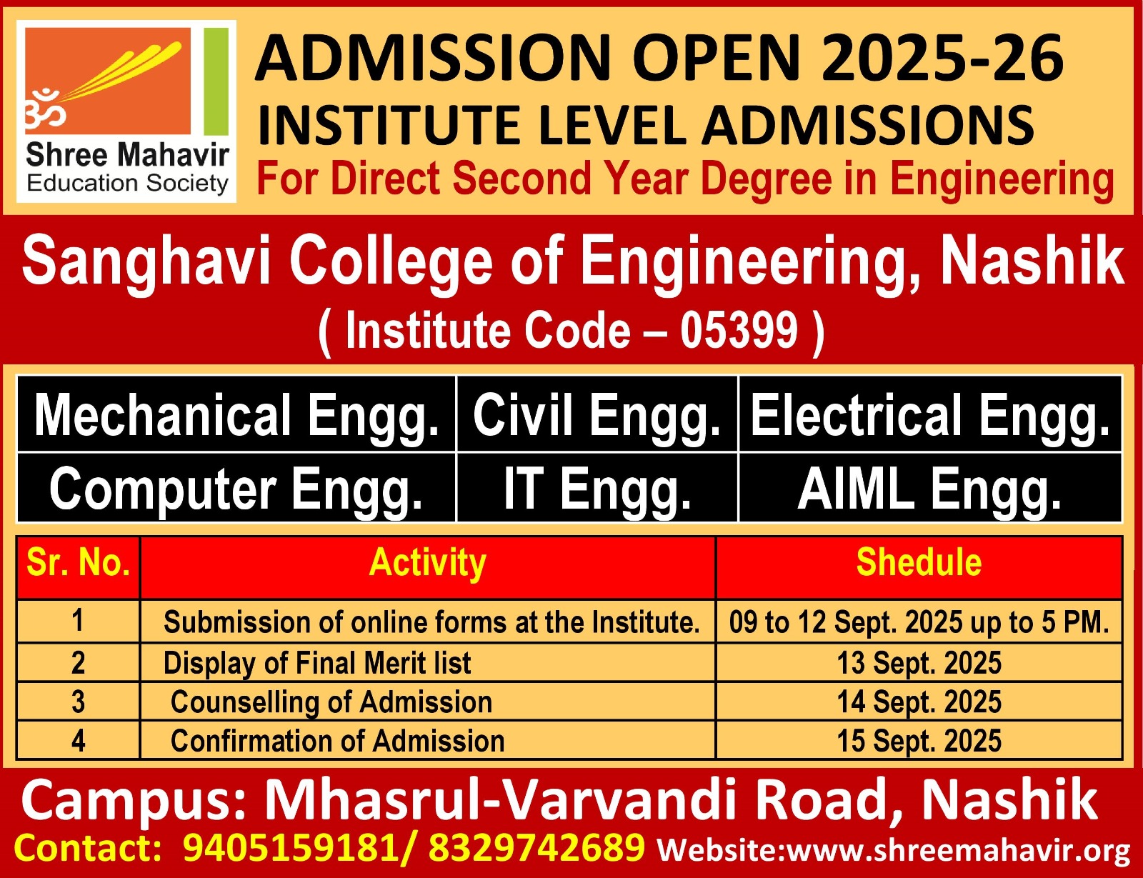 - 1st Year : Passed HSC Science with 45% for Open, 40% for Reserved in PCM/PCB/Vocational, Non-zero MHT-CET/JEE score or Diploma in Engineering.